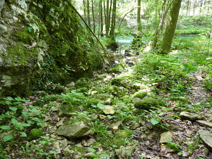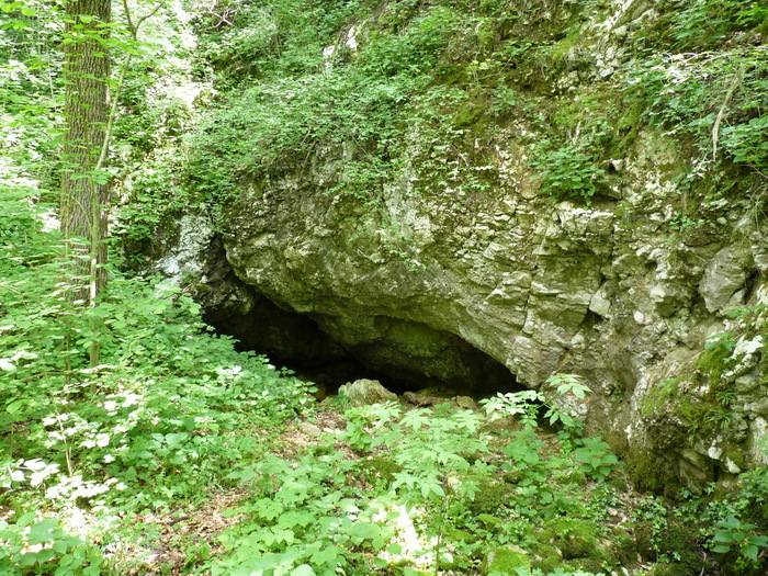 Izvirna kraška jama Pečina je nastala v strmem pobočju na desnem bregu Lahinje, na okljuku pri Pustem Gradcu. Spodmolast vhod v jamo je na nivoju rečne gladine, jama pa se zaključi z ozkim sifonom. Po ljudskem izročilu naj bi ukradeni zvon zvonika bližnje cerkvice Vseh svetnikov, ki stoji na okljuku, v jamo skril sam hudič, iz jamskih globin pa naj bi se še dandanes občasno slišalo zvonjenje .