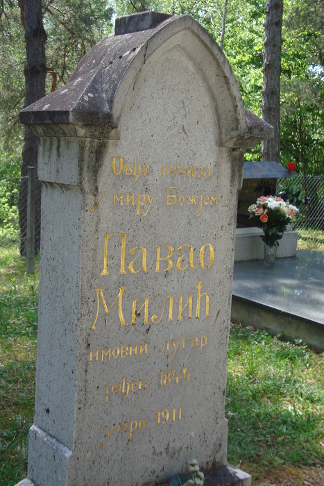 800 metrov od cerkve se sredi gozda nahaja ograjeno pokopališče. Po ustnem izročilu je oddaljeno in skrito, saj so predniki vaščanov bežali pred Osmani in pri tem s seboj prenesli tudi kosti prednikov, saj so se bali, da jih bodo napadalci oskrunili. Nekaj nagrobnikov je uničenih, ohranili pa so se najstarejši leseni križi (postavljanje kamnitih nagrobnikov se namreč pojavi šele ob koncu 19. stoletja). Najstarejši kamnit nagrobnik je postavljen premožnemu gozdarju Pavlu Miliću (1844–1911). Napisi na njih so v cirlici in latinici, večinoma pa so v srbskem jeziku.