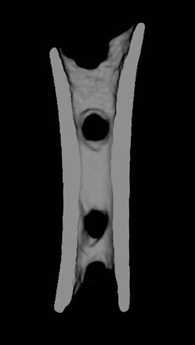 Računalniška tomografija piščali je še razkrila, da luknje in zverske poškodbe niso istočasne. Najprej so nastale štiri luknje in šele nato, ko je bila piščal zavržena ali izgubljena, večina poškodb, ki jih pripisujemo zverem.