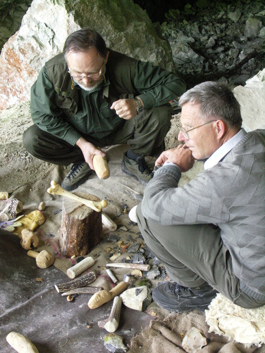 Pri preluknani stegnenici iz Divjih bab I je bilo ključno ugotoviti izvor lukenj. V poštev sta prišla samo neandertalec s svojimi kamnitimi in koščenimi orodji, ter zveri. Po temeljitem preverjanju možnosti umetnega in naravnega nastanka lukenj, je njihov izvor danes pojasnjen: luknje je izdelal neandertalec. Praktični poizkusi luknjanja svežih medvedjih stegnenic z bronastimi odlitki zverskih zobovij so ovrgli možnost, da bi zver stegnenico na osrednjem delu uspela večkrat preluknjati, ne da bi se kost zdrobila. Osrednji del stegnenice je zaradi debelejše kostne lupine tog in se pri več zaporednih ugrizih razkolje. To je tudi glavni namen tistih zveri, ki uživajo kostni mozeg. Zato so luknje na osrednjem delu cevastih kosti v paleolitskih najdiščih izredno redke in jih lahko pripišemo zgolj človeku.