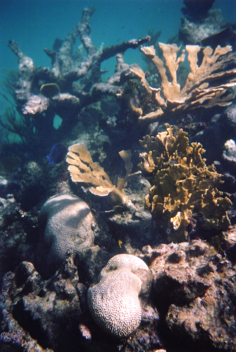 Zunanji rob grebena se zaradi velike energije valov neprestano ruši, drobir pa se odlaga na predgrebenskem pobočju. To pobočje navadno precej strmo prehaja v globljemorski bazen, kjer se odlagajo tanke plasti drobnozrnatih sedimentov, sestavljenih v glavnem iz hišic planktonskih enoceličarjev.