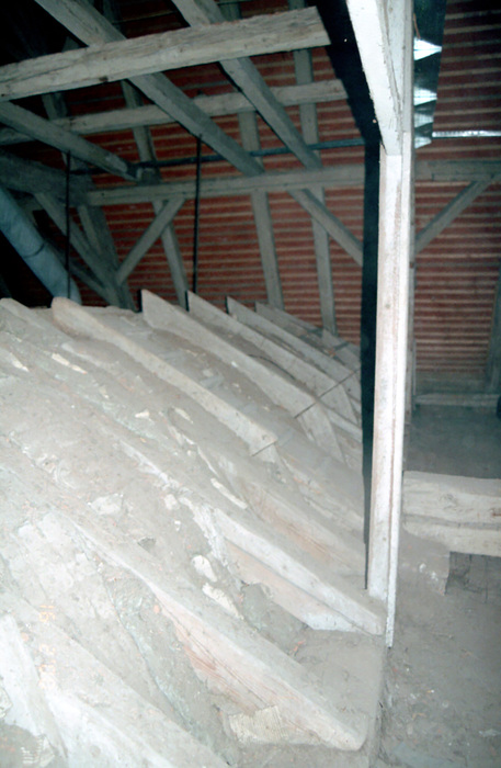Strešne konstrukcije nad posameznimi trakti so lesene dvokapnice in štirikapnice, krite z opečnimi bobrovci.
