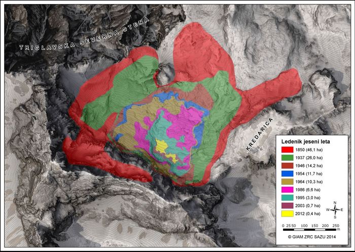 - Gabrovec, M. 1998: Triglavski ledenik med letoma 1986 in 1998. Acta geographica Slovenica 38, 89–110. Ljubljana, Geografski inštitut Antona Melika ZRC SAZU.