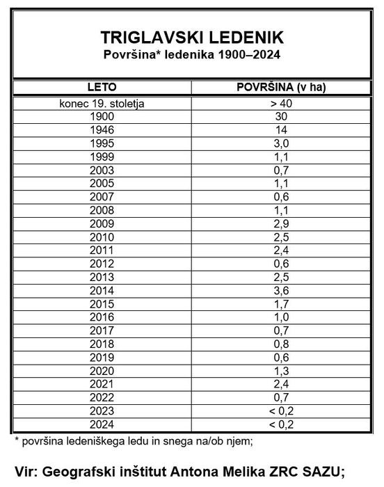 Meritve ledenikov so odličen kazalnik podnebne spremenljivosti Slovenije, saj so ledeniške zaplate na jugovzhodnem obrobju Alp zelo občutljive na podnebne spremembe. Tudi Triglavski ledenik je zadnja desetletja na robu obstoj a in eden redkih neposrednih dokazov teh sprememb. Aktualno dogajanje na tem ledeniku v zadnjih letih kaže, da nismo več daleč od njegovega popolnega izginotja, saj so bile povprečne temperature zraka talilne sezone (maj–oktober) v letih 2022–2024 najtoplejše v 70-letnem primerjalnem opazovanem nizu 1955–2024, daleč podpovprečne ta tudi snežne razmere v redilni dobi (november–april). V zadnjih letih vztrajata tik pod severnim ostenjem Malega Triglava le še dve manjši ledeni zaplati nekdaj enotnega ledeniškega telesa, ki sta ob koncu vsakoletne talilne dobe v večji meri prekriti z gruščem. Večje količine tega so posledica čedalje bolj intenzivnega temperaturnega in zmrzalnega preperevanja kamnine, ki gradi ostenje. Če se bodo takšne temperaturne in snežne razmere in tovrstne posledice podnebnih sprememb nadaljevali, bosta tudi ti dve, zadnji zaplati ledu, ki še vztrajata na vrhu Triglavskih podov v naslednjih nekaj letih izginili.