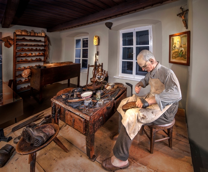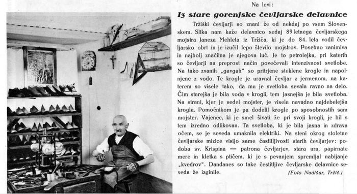 Čevljarska svetilka ali luč na gavge, na nemškem jezikovnem prostoru bolj znana kot die Schusterkugel ali die Schusterlampe, ki je razstavljena v stalni zbirki Tržiškega muzeja, je zanimiva zaradi svoje konstrukcije in delovanja. Steklene krogle, napolnjene z vodo, okrepijo in usmerijo snop svetlobe na želeno mesto. Take svetilke so bile v Evropi v rabi vsaj že v 16. stoletju, uporabljali so jih tkalci, klekljarice, sitarji in drugi rokodelci. Ohranjena v Tržiškem muzeju pa predstavlja edinstven primerek na Slovenskem.