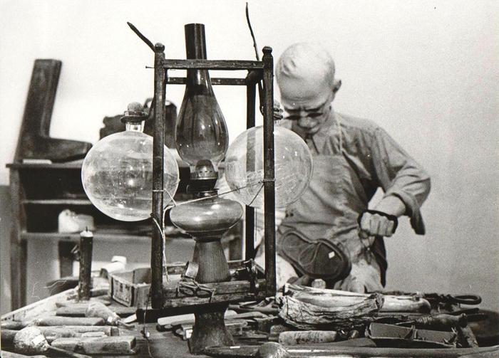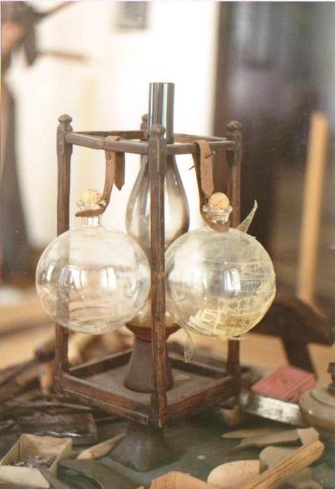 Po izročilu so čevljarji od sv. Mihaela, 29. septembra, do sv. Gregorja, 12. marca, ko je bil dan kratek, zjutraj in zvečer delali ob svetilki. Svetlobo, ki jo je dajala sveča in pozneje petrolejka, so s pomočjo krogel usmerili tja, kjer so jo najbolj potrebovali – v naročje, kjer so izdelovali obutev. Na kvadratno desko so pritrdili štirioglat okvir – gavge, nanj pa z usnjenimi paščki pritrdili steklene krogle, ki so jih napolnili s prekuhano vodo. Na sredi stojala je prvotno stala sveča, pozneje petrolejka, in skozi z vodo napolnjene steklene krogle usmerjala močnejšo svetlobo v naročje čevljarja. Z usnjenimi paščki so usmerjali snop svetlobe, pomembni pa sta bili tudi velikost steklene krogle in, kot se je ohranilo v ustnem izročilu, starost vode v njej. Največja steklena krogla je pripadala mojstru, pomočnikom pa manjše. Če je smel tudi vajenec sedeti za mizo pred svojo stekleno kroglo, naj mu ne bi več veliko manjkalo do napredovanja med pomočnike. V ustnem izročilu se je ohranilo, da naj bi boljšo svetlobo dobili, če so v steklene krogle nalili špirit.