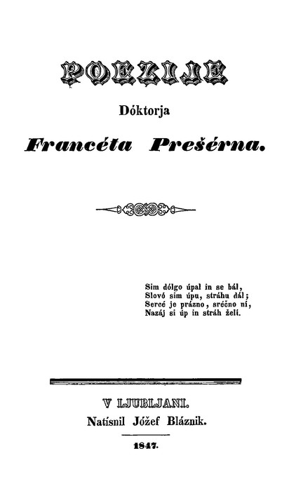 Šavc, U. 2010: Poezije Doktorja Franceta Prešerna. DEDI - digitalna enciklopedija naravne in kulturne dediščine na Slovenskem, http://dedi.si/dediscina/66-poezije-doktorja-franceta-preserna.