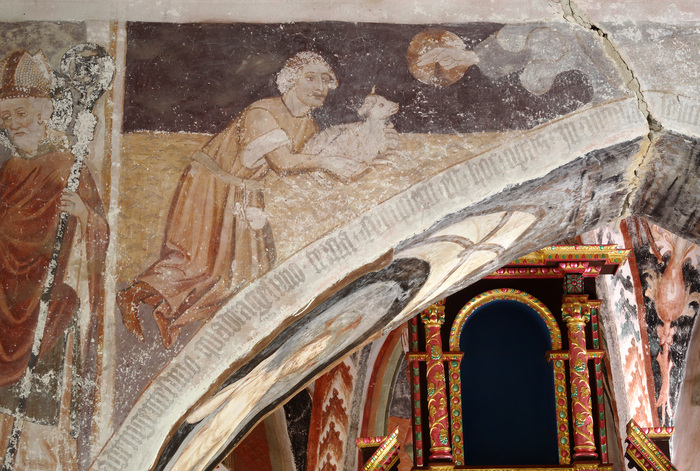 Cerkvica (nekdaj na posesti turjaških gospodov) je zelo pomembna predvsem zaradi srednjeveških fresk v prezbiteriju in na slavoločni steni, delno so se ohranile tudi na zunanjščini. V notranjščini se je ohranil napis v latinščini, ki sporoča, da je delo 20. septembra 1443 izvršil ljubljanski meščan, sin koroškega mojstra Friderika iz Beljaka, Janez Ljubljanski. Bil je »dvorni slikar« stiškega cistercijanskega samostana in Turjačanov ter je deloval v glavnem na Dolenjskem (npr. Muljava, Kamni Vrh nad Ambrusom, Mali Ločnik nad Turjakom), na Visokem pa so mu v precejšnji meri pomagali tudi pomočniki. Vsebinsko in dekorativno se je naslonil na domači tip poslikave »kranjskega prezbiterija«, kakršnega Koroška ni poznala. To pomeni, da se je držal določene sheme, ki se je uveljavila za poslikavo prezbiterija na Kranjskem. Tu sta obe bistveni sestavini tega ikonografskega programa: dvanajst apostolov na stenah oltarnega zaključka (od Petra na levi do Matije na desni) ter obok s simboli evangelistov (angel, lev, bik, orel), angeli (muzikanti z glasbenimi inštrumenti in v molitvi) in Kristusom Vladarjem (pomaknjen sicer z oboka na vzhodno podločje za oltarjem). Vsebina poslikave je razširjena z dopasnimi svetniki v lunetah, angelom Gabrijelom in Marijo Oznanjenja na notranji strani slavoločne stene (običajno je na zunanji), sv. Jurijem na konju, ki ubije zmaja in reši princesko Marjetico, s Kajnovo in Abelovo daritvijo, s sv. Florijanom in Trpečim Kristusom (Imago pietatis) na notranjem pasu slavoločne stene. Tu so upodobljeni tudi legendarni prizori iz življenja zavetnika cerkve sv. Nikolaja (Miklavža). Zanimiva sta zlasti prizora, ko sv. Miklavž čudežno reši tri mladeniče pred obglavljenjem, ter prizor, ko reši ladjo z mornarji pred viharjem.