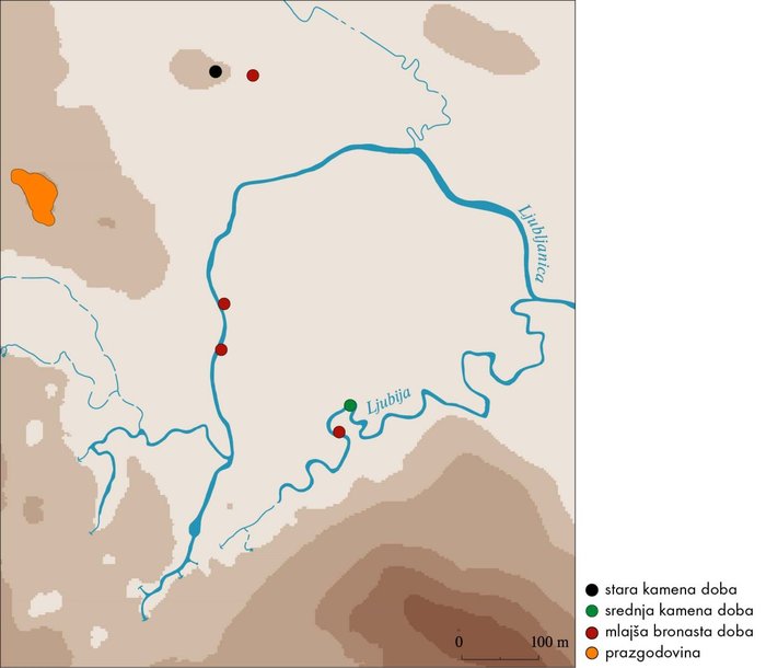 Tudi poselitev prostora je zelo stara. Na hribu Tičnica je stala velika prazgodovinska naselbina (podrobneje nedatirana), od katere so se ohranile terase in zemljeni okopi. Iz bronaste dobe so naselbinski ostanki v strugi Ljubije pri Verdu (13.–11. st. pr. n. št.) ter v strugi Ljubljanice na Vrhniki. Na Vrhniki je bil najden grob z mečem iz srednje bronaste dobe (druga polovica 16.–14. stol. pr. n. št.).