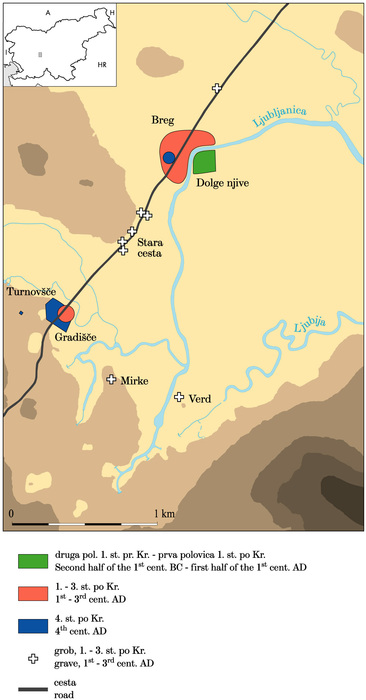 - Mušič, B., Horvat, J. 2007: Nauportus – an Early Roman trading post at Dolge njive in Vrhnika. Arheološki vestnik 58, 219–283. Ljubljana. [COBISS-ID 27351341]