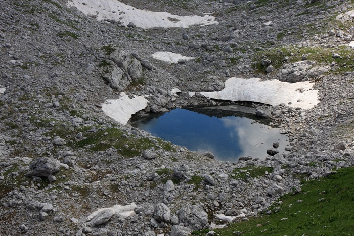 Jezero pod Vršacem je prvo v nizu Triglavskih jezer in edino, čigar vode odtekajo proti Soči.