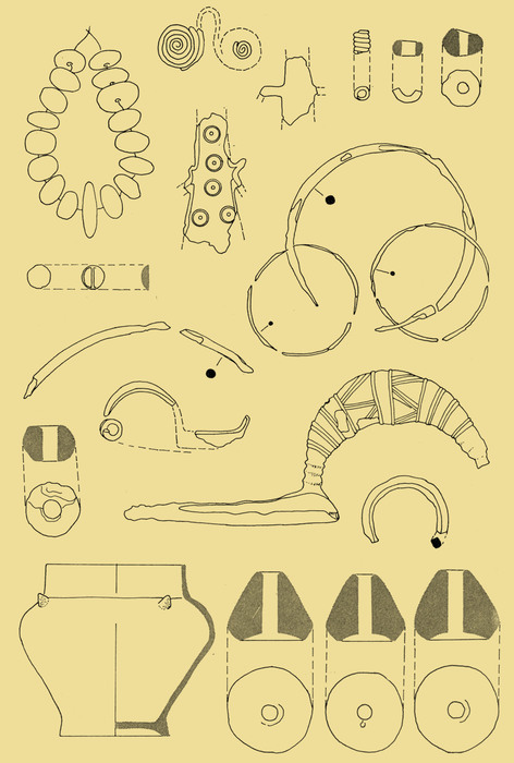 Gradivo iz grobov sodi večinoma v starohalštatsko obdobje. Hrani ga Naravoslovni muzej Dunaj.