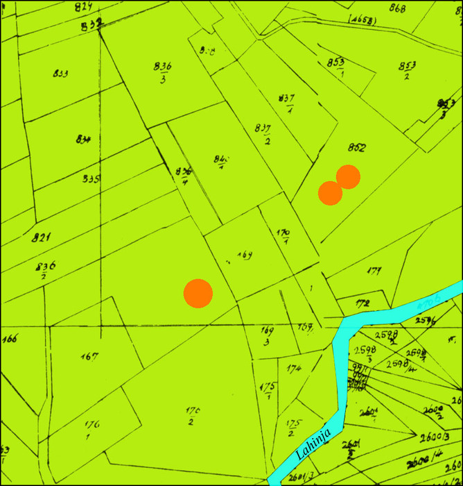 Danes sta v gozdu, vzhodno od velike gomile, ohranjeni še dve. Stojita druga ob drugi in merita v premeru 12 m. Na eni od gomil je dobro viden podolžni jarek, ki kaže na to, da je bila raziskana.
