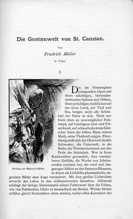 V separatu, ki je izšel leta 1890, je Friedrich Müller nadrobno opisal raziskovanje in naravne lepote Škocjanskih jam. Knjiga slikovito prikazuje način raziskovanja, ki je bil uveljavljen v takratnem času. Zadnji del separata je namenjen arheološkim najdbam. Besedilu so dodane ilustracije A. Heilmanna.