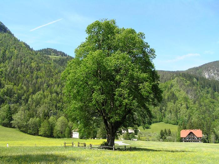 Logarjeva lipa raste na začetku ledeniške Logarske doline.