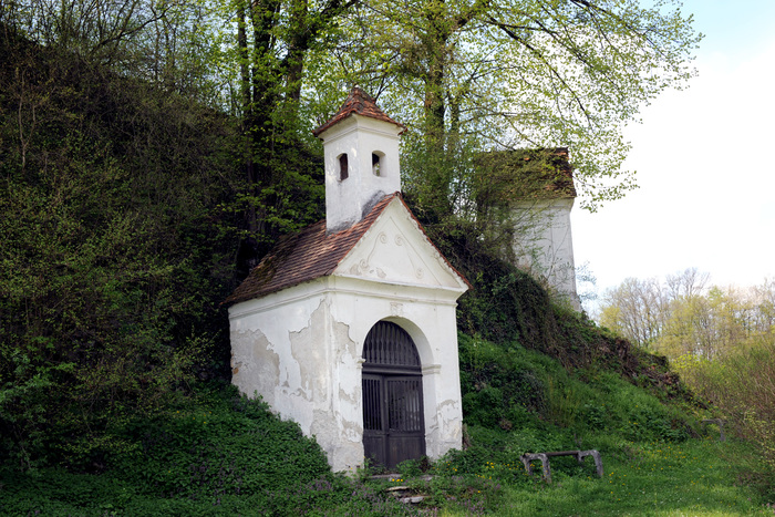 Ob vznožju griča, na katerem stoji cerkev, so bile v 18. stoletju zgrajene štiri kapele. Nekoč je tu stalo tudi votivno (zahvalno) znamenje z Marijinim kipom, ki je bilo kasneje preneseno v Laško. Original kipa je shranjen v cerkvi sv. Martina, njegova kopija pa stoji na visokem kamnitem podstavku pred cerkvijo sv. Martina na Aškerčevem trgu v Laškem.