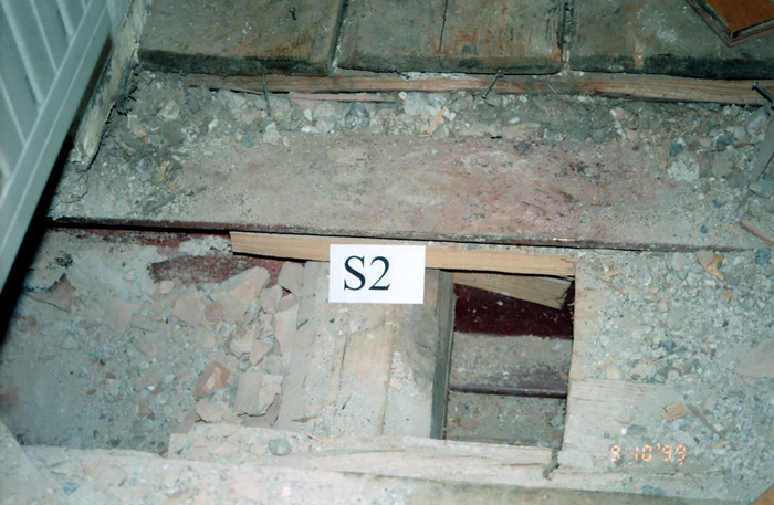 Nosilni zidovi v kleti so grajeni mešano iz kamna in opeke, stropovi nad kletjo pa so opečni oboki. Bolj obremenjeni obodni in notranji vzdolžni zidovi so debeli 90 cm, manj obremenjeni prečni zidovi pa 45 cm. V pritličju in nadstropjih so nosilni zidovi grajeni iz polnih opečnih zidakov starega formata (29 x 14 x 6.5 cm) v apneni malti. Debelina zidov je različna (75 cm, 60 cm, 45 cm ali 30 cm), poleg tega se debelina nekaterih v vsaki ali vsaki drugi etaži stopničasto zmanjša. Stropne konstrukcije nad učilnicami v pritličju in nadstropjih so sestavljene iz jeklenih nosilcev v prečni smeri učilnice in lesenih stropnikov, položenih med jeklene nosilce. Nad hodniki in sanitarijami pa so stropovi grajeni iz prečnih jeklenih nosilcev in vmesnih betonskih plošč. Razpored in dimenzije jeklenih nosilcev so razvidne iz dostopnih arhivskih načrtov. Večina jeklenih nosilcev je sidranih na nasprotno površino zidov, kar je razvidno iz načrtov, potrjeno pa tudi z detajlnim pregledom. Na ta način so bili stropovi povezani z zidovi. Detajlni pregled je poleg tega pokazal, da so bili zidovi povezani z vodoravnimi vezmi iz ploščatega železa, vgrajenimi v zidove v višini stropov.