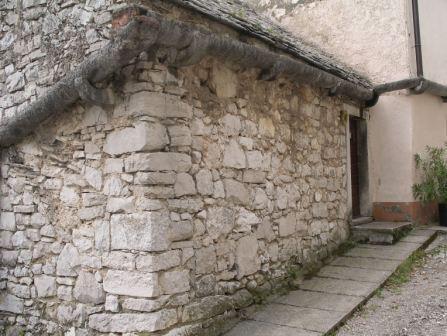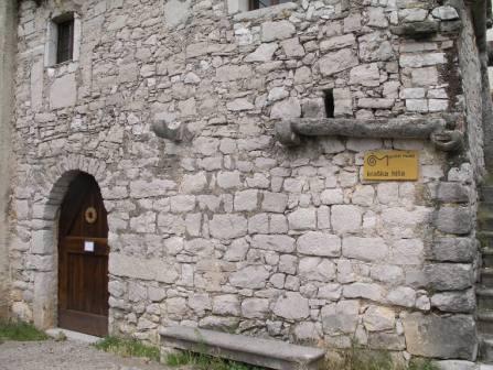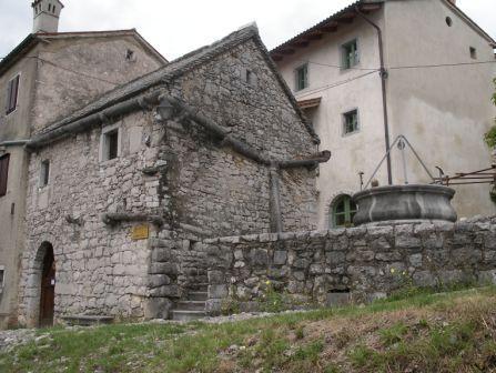 Sodi v 14. ali 15. stoletje, ko se je na Krasu še razvijalo obdobje romanike. Razdeljena je na spodnji, gospodarski del in zgornji, bivalni del. Poleg kamnitih zidov, strehe in tlakov ima hiša dodane tudi kamnite žlebove, okvire oken in vrat ter tečaje za vrata. Zidana je brez malte (t. i. suha gradnja) in pokrita s »škrljami« – tankimi kamnitimi ploščami. Poleg nje se nahaja velik kamnit vaški vodnjak – »komunska štirna«, v katerem se je zbirala kapnica in ki še danes služi svojemu namenu. Domneva se, da je vodnjak iz 17. ali 18 stoletja. Leta 2002 so ga ponovno obnovili.
