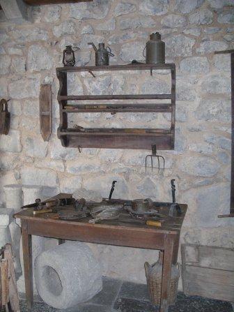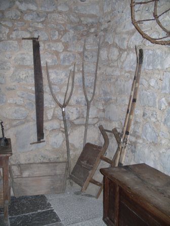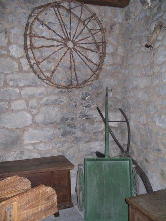 V zgornjem in spodnjem prostoru so zbrani tipični predmeti, ki odražajo funkcijo stavbe v zadnjem obdobju njene rabe. Levo od vrat v zgornjem prostoru je spalnični del s posteljo, zibeljo, dvema skrinjama, ter vzidano omarico. V kotu diagonalno od vhoda je bilo nekoč ognjišče, kar še danes dokazuje na verigo obešen kotliček, nekaj kuhinjskih posod, predmetov in orodja. V kot so postavili še kolovrat in poslikano skrinjo. Ob steni desno od vrat stoji tik za vhodom klop, nad njo je pritrjen sklednik, ob isti steni je postavljena še miza z »mentrgo«, na kateri so pripravljali kruh, ob zunanji steni pa stoji omara s predali, v kateri so hranili živila. V kletnem prostoru je razpostavljenih več orodij in naprav, ki so jih uporabljali pri delu. Največja med temi je preša za stiskanje grozdja, sledijo še škropilnica za škropljenje vinske trte, slamoreznica, vile za seno, na steni pa visita dve »krpeli« za nošenje sena. V prostoru se nahaja tudi zbirka kamnoseških izdelkov, kot so stebrički za ograjo, posode za različne namene in stare plošče z napisi. Ogled zbirke je možen po dogovoru.