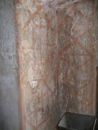 Sprva je hiša služila kot gospodarsko poslopje, dostopna pa je bila iz spodnje ulice. V zgornjem nadstropju se vidijo še nekdanja polkrožna vrata, ki so bila namenjena metanju sena na »pod«. Kasneje je prišlo do prezidav, s katerimi so spremenili prvotno funkcijo hiše. Nadstropje je bilo predelano v enocelični bivalni prostor, kletna etaža pa v shrambo (»hram«). Predelava je razvidna iz novih okenskih odprtin in pozneje izdelanemu direktnemu vhodu v etažo z gornje ulice. Zgornji prostor je bil tudi ometan z apneno malto, ki je bila grobo zglajena po zidu. Na tem ometu so ob predelanem levem oknu zgornjega prostora odkrili še ohranjene poslikave. Gre za preproste geometrijske ornamente v rdečih odtenkih. V steni sta ohranjeni vzidana lesena omarica (»tabernakelj«), kamor so včasih spravljali hrano, ter niša za postavljanje svetil in drugih predmetov. Ob leseni omarici na krajši zunanji steni zgornjega prostora se je ohranila druga plast novejše poslikave. Zanimivost hiše – tako kot pri drugih v Štanjelu – so leseni stropovi, položeni na stropnike, ki slonijo na konzolah.