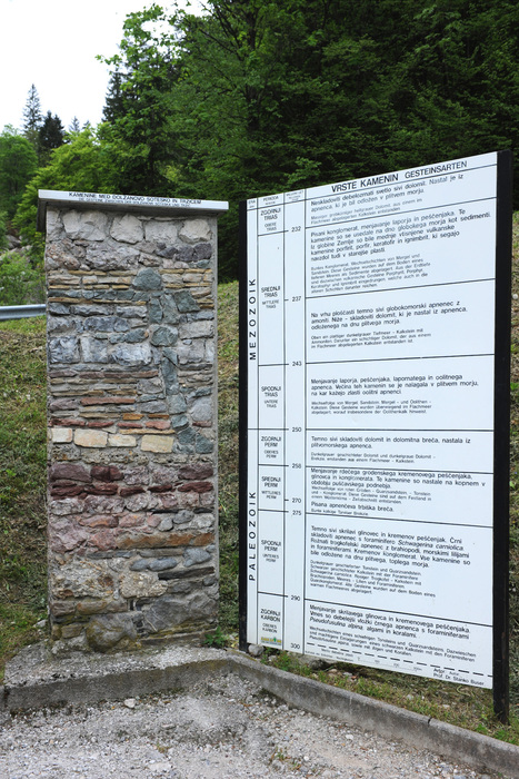V soteski Tržiške Bistrice najdemo kamnine iz mlajšega paleozoika, stare med 250 in 300 milijoni let. Stik zgornjekarbonskih plasti z zgoraj ležečo spodnjepermsko dovžanovosoteško formacijo je tektonski, tako da karbonsko/permska meja ni vidna. Različne kamnine in morebitni fosili v njih so odsev različnih geoloških in klimatskih razmer na tem območju v različnih geoloških obdobjih. Najpomembnejše kamnine so: grödenski rdeči peščenjak, trbiška breča, apnenec in kremenov konglomerat.
