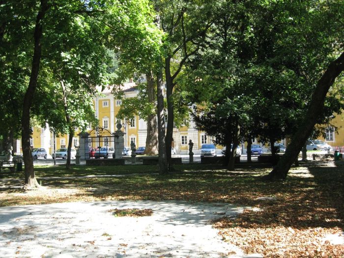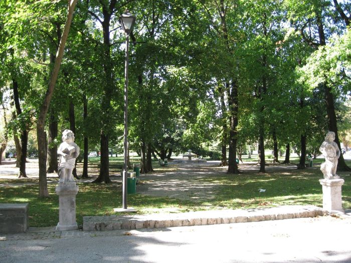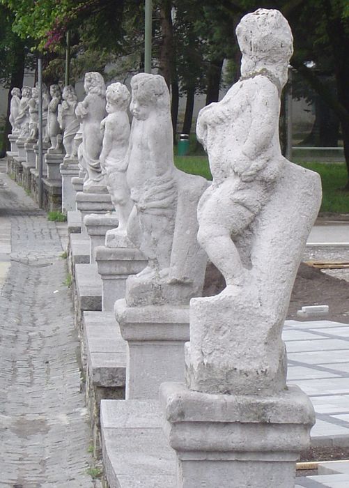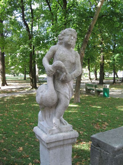 Baročni park ob graščini Lanthieri, ki stoji ob izviru reke Vipave, ob južnem robu starega dela istoimenskega naselja Vipavski dolini, so uredili leta 1762. Vrt, postavljen v osi pročelja dvorca, je bil prvotno ograjen in parterno oblikovan. Razdeljen je bil v dvanajst polj: v sredini poti je stala kamnita fontana v obliki dateljna, z neohranjenim kipom putta na vrhu, po travnatih površinah vrta pa je bilo razpostavljenih veliko kamnitih kipov, puttov, ki so z različnimi atributi (rastlinami, živalmi, grbovnimi kartušami) simbolizirali izobilje, plodnost in letne čase. V 19. stoletju so vrt svobodneje preoblikovali, po drugi svetovni vojni so podrli njegovo ograjo in ob severozahodni strani zgradili novo cesto, leta 1963 pa so ohranjenih petindvajset kipov puttov z vrta prenesli na rob trga in jih postrojili v ravno vrsto. Zdaj ima precej okrnjen vrt vlogo mestnega parka.