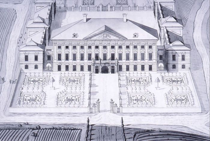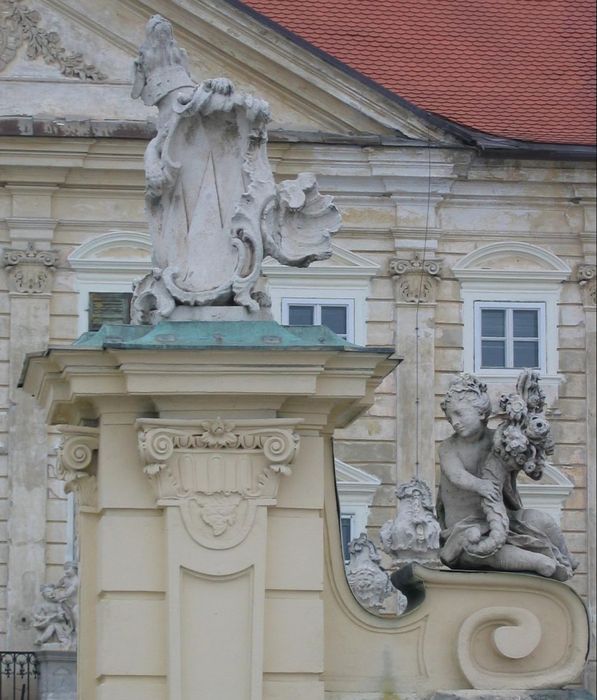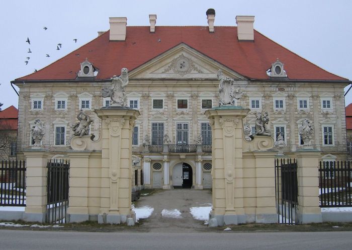 Današnjo stavbo je po požaru leta 1695, okrog leta 1700 oziroma pred letom 1708, po naročilu grofa Franza Antona Sauerja postavil neznan italijanski arhitekt. Starejši in manjši dvorec so pri tem bodisi podrli bodisi vključili v novo stavbo.