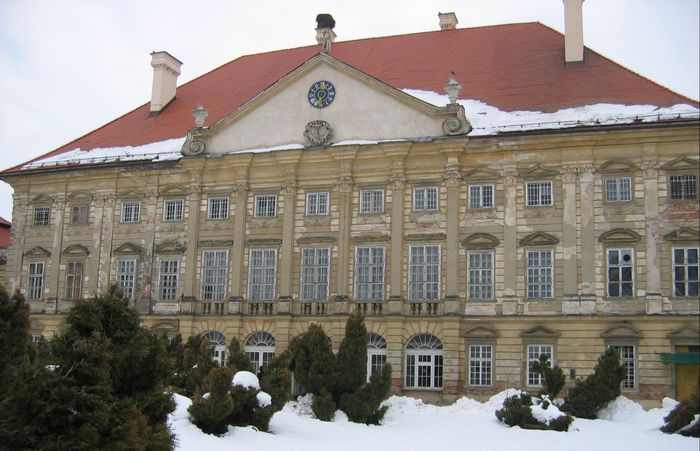Današnjo stavbo je po požaru leta 1695, okrog leta 1700 oziroma pred letom 1708, po naročilu grofa Franza Antona Sauerja postavil neznan italijanski arhitekt. Starejši in manjši dvorec so pri tem bodisi podrli bodisi vključili v novo stavbo.