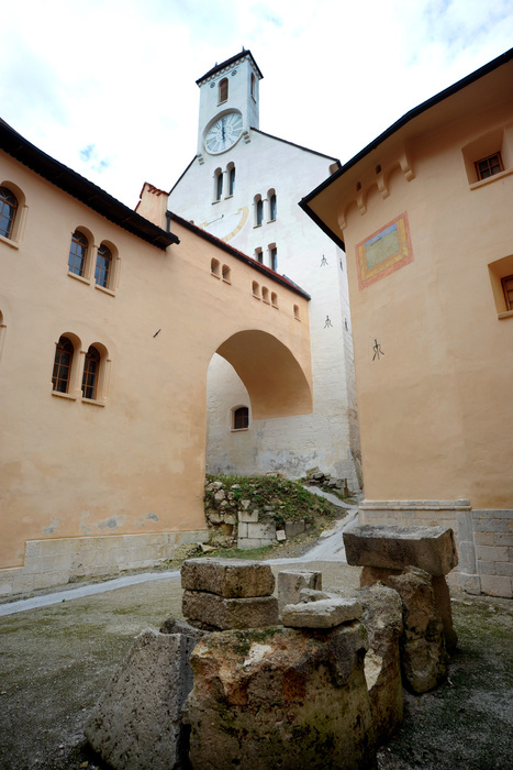 Najstarejši del gradu je romanski stolp iz prve polovice 13. stoletja z dva in pol metra debelimi zidovi, grajskim obzidjem in kapelo. V prenovi leta 1568 je bil dodan okrogel stolp, v obdobju baroka pa še manjši arhitekturni detajli, kot je stolpič nad kapelo. V 18. stoletju so stolp znižali za eno etažo, v renovaciji leta 1867 pa so dodali neoromanske in neogotske okrase, delno popravili zidovje in zaprli odprtine.