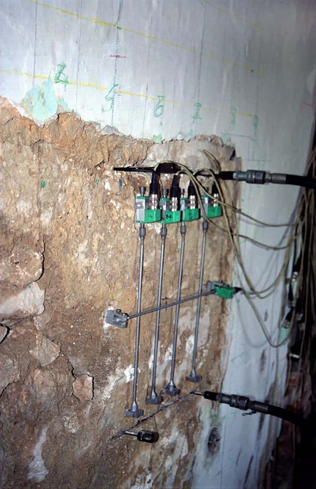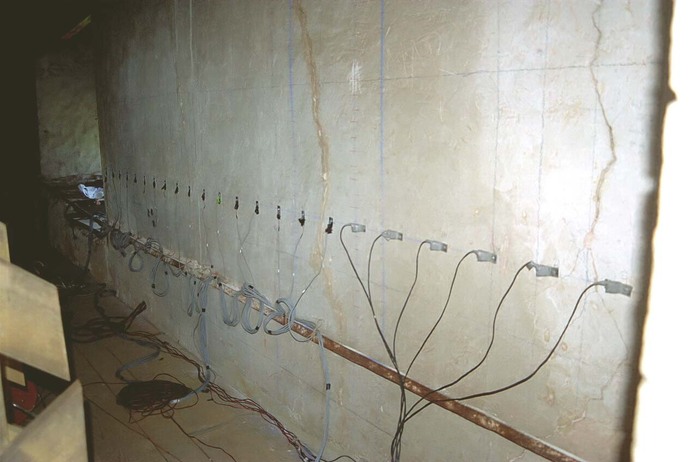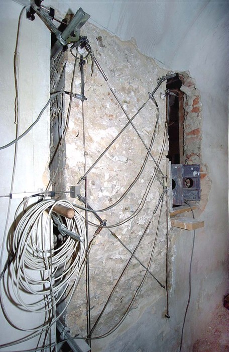 Meritve hitrosti prehoda signala z radarjem so pokazale, da je zidovje v notranjosti na določenih mestih poškodovano (tam signal ni prodrl skozi zid). Meritve z zvokom so bile narejene pred in po strižni preiskavi, v kateri se poškoduje zidovje. Rezultati so bili namenjeni umeritvi obeh metod. V splošnem so meritve pokazale veliko nehomogenost zidovja, pridobljeni podatki pa so bili uporabljeni tudi pri projektiranju ob prenovi objekta.