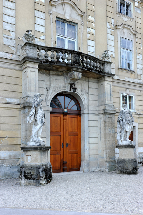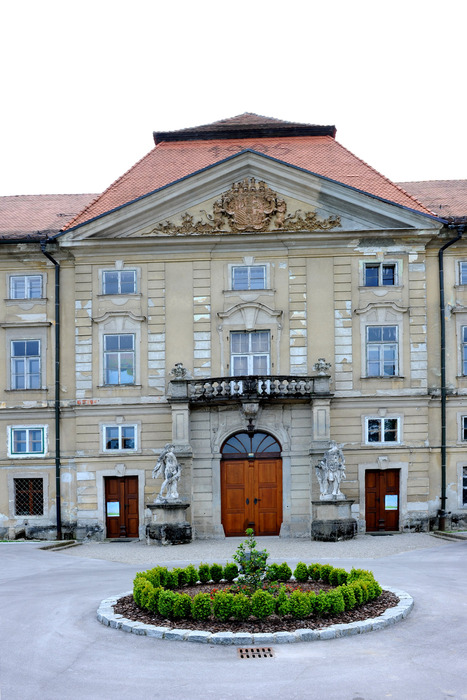 Simetrično zasnovan objekt s štirimi nadstropji je delo znanih baročnih arhitektov Matije Perskya, Veita Konigerja, Antona Lerchingerja in Jožefa Kaspijana, ki so ga zgradili po naročilu grofa Antona Geisrucka, takratnega ministra cesarice Marije Terezije.