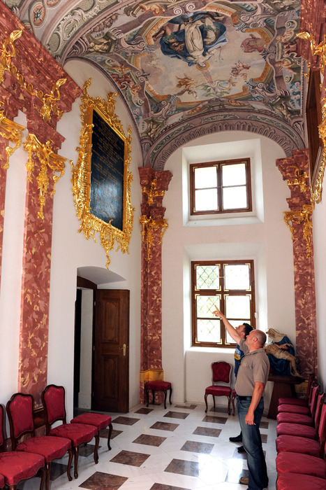 Jedro baročnega dvorca predstavlja svečana dvorana, v kateri so se ohranili originalna obdelava v štukomarmorju, štukature in pozlate ostenij, stropne in stenske poslikave ter rezljano stavbno pohištvo s pozlatami.