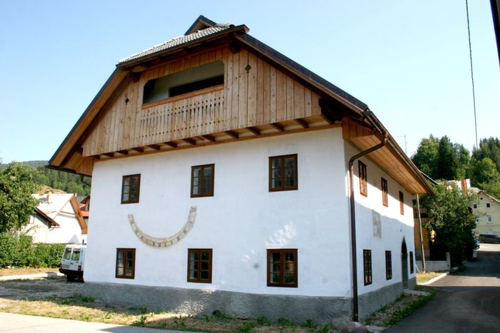Na obcestni vzhodni fasadi hiše je ohranjena freska sv. Florijana, na južni čelni strani pa je sončna ura. Na zunanji, nekdaj dvoriščni zahodni steni kamre, je ohranjen s črno barvo naslikan šivan rob, ki kaže na nekdanjo višino prizidane kamre ob leseni hiši. Glavni vhod v hišo, ki se nahaja na vzhodni strani, ima polkrožni kamnit portal in profilirana vrata. V mlajši plasti znotraj zidane hiše so poleg preperelega lesa, ki dokazuje obstoj lesene stavbe, našli tri vogalne kamne, na katerih so se križala bruna hiše. Na mestu četrtega vogala pa naj bi stal zid lončene peči oziroma ognjišča v črni kuhinji. Na zahodni strani je kamra, poleg te se je ohranila nekdaj samostojno stoječa zidana kašča. Podzemni del nekdanje kašče je današnja klet. Prvotno leseno stavbo so obzidali na zunanji strani lesenih tramov in ji dali današnjo enonadstropno podobo. Tlorisna zasnova pritličja se skoraj identično ponovi tudi v nadstropju, le brez prostora nad črno kuhinjo in shrambo. Podoba hiše iz 19. stoletja se je delno ohranila do današnjih dni, vendar brez gospodarskega poslopja. Od nekdanjega skrbno izdelanega stavbnega pohištva so se ohranila vrata v hišo, shramba in črna kuhinja, deli vzidanih omaric in v celoti ohranjen štukaturni okras v hiši.