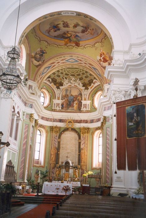 Visokobaročna nekdaj samostanska in danes župnijska cerkev se nahaja v kraju Gornji Grad na Štajerskem. Leta 1140 ustanovljeni benediktinski samostan je leta 1461 prešel v last novoustanovljene ljubljanske škofije. Romanska slopna bazilika z gotskim prezbiterijem, ki je bila v tistem času največja cerkev na Slovenskem, je postala sostolnica, torej druga rezidenca ljubljanskih škofov. Škof Krištof Ravbar je dal v začetku 16. stoletja cerkev in samostan obdati z obzidjem. Od vsega tega pa je ohranjenega zelo malo, saj je dal v 18. stoletju škof Ernest Amadej Attems cerkev in poslopje ukinjenega samostana temeljito prezidati. Po načrtih Matije Perskega, avstrijskega arhitekta, ki se je ustalil v Ljubljani, so najprej, do leta 1751, postavili novo škofijsko rezidenco, reprezentančni dvorec z veliko in v celoti poslikano slavnostno dvorano (v požaru leta 1944 je bil skoraj povsem uničen), nato, v letih 1752-59, pa še novo cerkev. V zasnovi cerkev, ki predstavlja enega ključnih spomenikov visokega baroka na Slovenskem, sledi vzoru ljubljanske stolnice, vendar je gornjegraški prostor mehkeje oblikovan. Vse oblike dvopolne dvorane s kapelami, visoko ovalno kupolo nad križiščem s prečno ladjo in štirikotnim prezbiterijem so zaobljene in valovijo. Stenski slopi, sestavljeni iz pilastrov in tričetrtinskih stebrov, so okrašeni z kompozitnimi kapiteli, bogato profiliran venec pa veže prostornino v enotno celoto, ki jo dopolnjuje skupina oltarjev s slikami, ki jih je v letih 1773-75 izdelal avstrijski slikar Johann Martin Kremser-Schmidt. Tudi pročelje je baročno vzvalovljeno: osrednji del je konkavno poglobljen in obdan z dvojnimi pilastri. Iz Ravbarjevega časa sta ohranjena dva pomembna renesančna spomenika, nekdanja oltarna plošča Mučeništvo sv. Andreja, zdaj vzidana v zid ob župnišču, ter Ravbarjev nagrobnik, zdaj vzidan v podkorje, oboje je leta 1527 izdelal avstrijski kipar, ki je deloval v Ljubljani, Ožbalt Kitell.